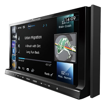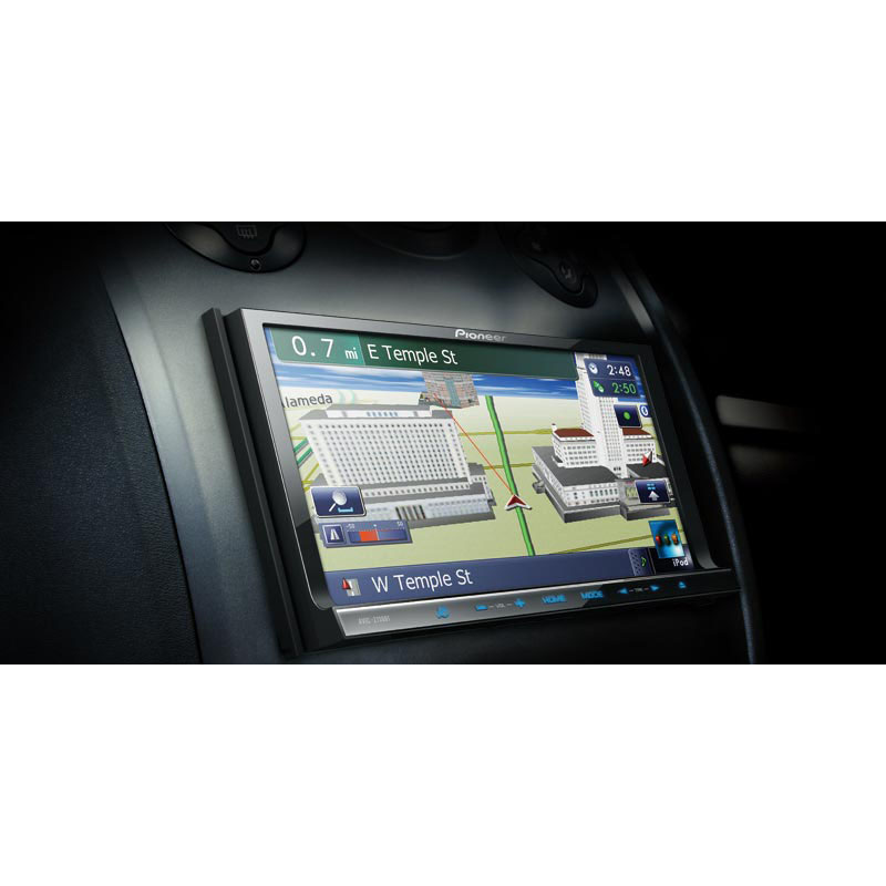 Pioneer's flagship navigation receiver, the double-DIN AVIC-Z130BT features built-in navigation with maps of the US, Alaska, Hawaii, Canada, and Puerto Rico. Get there fast with spoken street names, lane guidance, and a wealth of GPS features, and stay in touch on the way with built-in Bluetooth for hands-free calling. The motorized 7-inch WVGA touchscreen display is great for GPS and for navigating your entertainment, whether it's DVDs or CDs, your digital media from USB drives or microSD cards, or content from your iPhone. Speaking of iPhones, the AVIC-Z130BT features enhanced integration with Pandora and Aha Radio apps, along with GPS features through the free AVIC FEEDS app.
